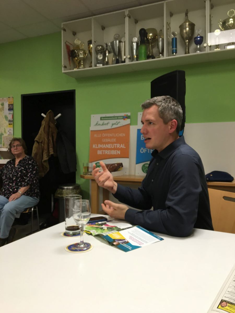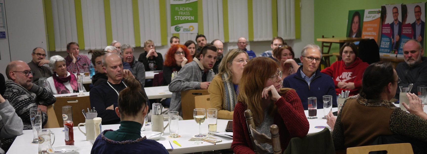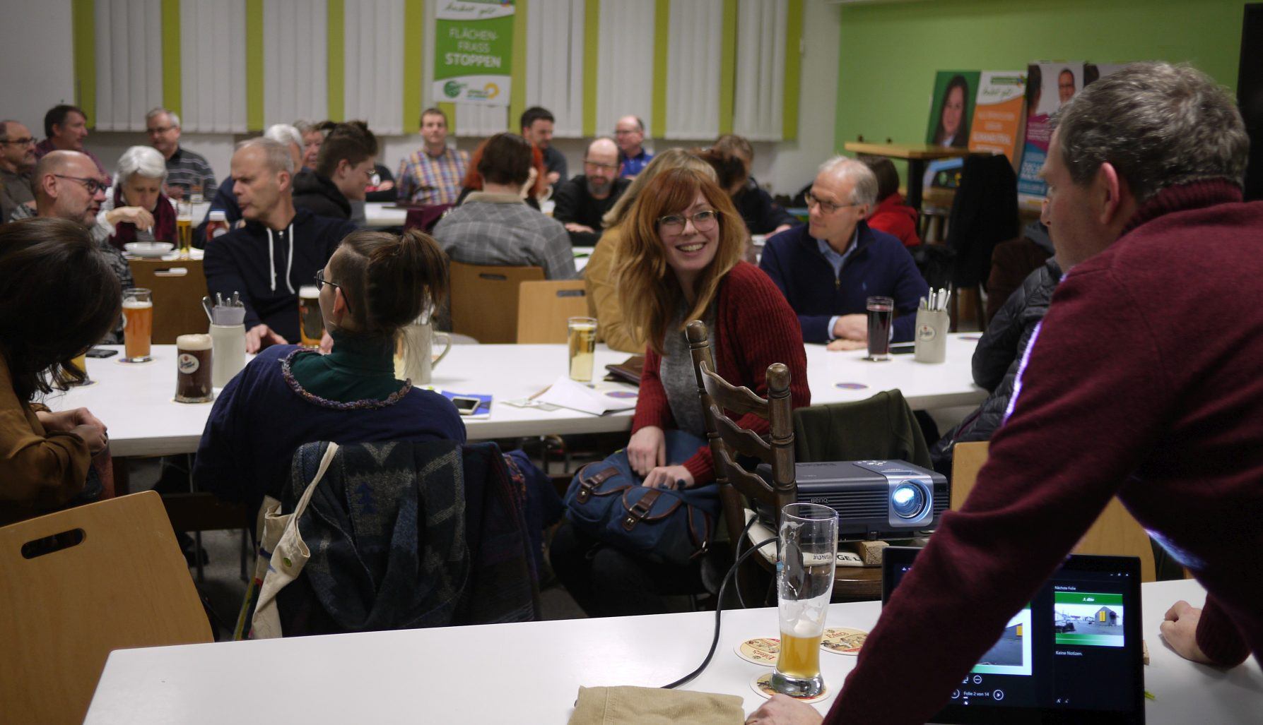 Am 14. Februar besuchte Christian Zwanziger, Geograf und Mitglied des bayerischen Landtags von Bündnis 90 / Die Grünen, auf Einladung des Kreisverbandes unseren Landkreis. Unser Ortsverband Großostheim gestaltete vor Ort diesem spannenden Vortragsabend. Bei gefüllten Plätzen begrüßte Dagmar Sonnenberg (Sprecherin) das bunt gemischte Publikum. Thomas Bechtloff, Mandatsträger der Jungen Liste Bachgau, erklärte in einer kurzen Ansprache, dass die Anzahl der Einwohner*innen in Großostheim in den letzten 60 Jahren um 50% gestiegen sei. Die Fläche, die dafür versiegelt wurde, liegt allerdings beim sechsfachen. „Es lastet ein gewaltiger Druck auf den freien Flächen!“ Eine kurze Präsentation durch Dagmar macht klar, wie viel Fläche alleine durch Parkplatznutzung gepflastert wird, wobei schnell deutlich wird, dass es hier vor Allem darum geht, es dem Auto so bequem, wie möglich zu gestalten. Barrierefreie Zugänge zwischen einzelnen Parkplätzen sind Fehlanzeige und Schutzzonen für Fußgänger*innen ebenfalls. Das Thema der geplanten Ortsumgehung Pflaumheim beschäftigt die Menschen hier ja nun schon eine ganze Weile, zudem ist die Zahl von 11,6 Hektar Flächenverbrauch und die Einschnitte im Umlandgrün wirklich schwer zu ertragen.