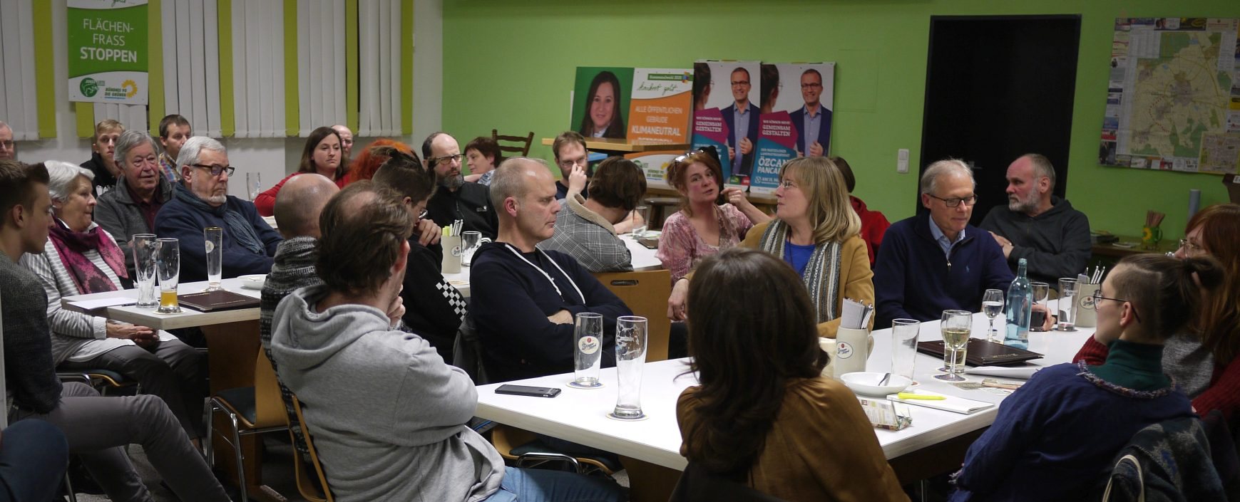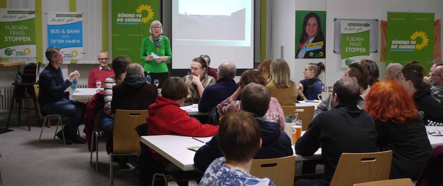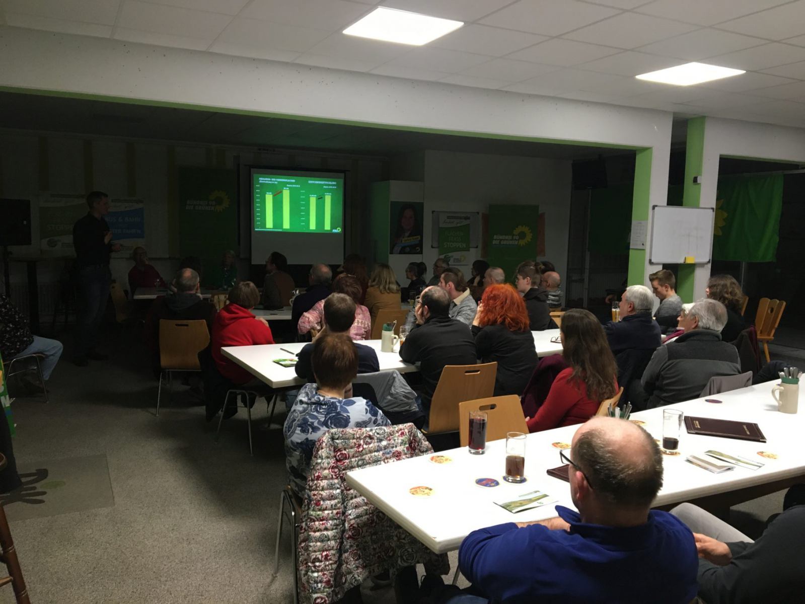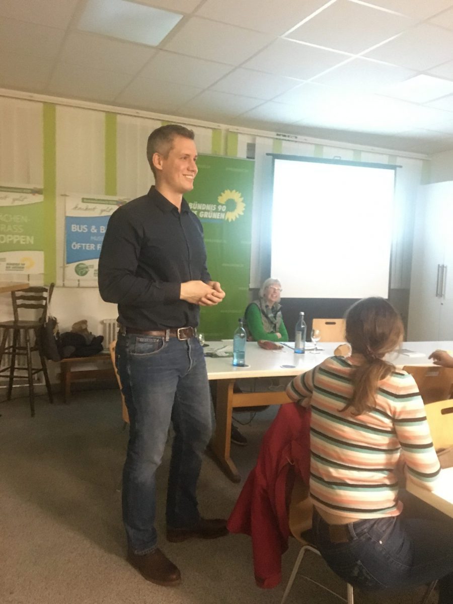 Am 14. Februar besuchte Christian Zwanziger, Geograf und Mitglied des bayerischen Landtags von Bündnis 90 / Die Grünen, auf Einladung des Kreisverbandes unseren Landkreis. Unser Ortsverband Großostheim gestaltete vor Ort diesem spannenden Vortragsabend. Bei gefüllten Plätzen begrüßte Dagmar Sonnenberg (Sprecherin) das bunt gemischte Publikum. Thomas Bechtloff, Mandatsträger der Jungen Liste Bachgau, erklärte in einer kurzen Ansprache, dass die Anzahl der Einwohner*innen in Großostheim in den letzten 60 Jahren um 50% gestiegen sei. Die Fläche, die dafür versiegelt wurde, liegt allerdings beim sechsfachen. „Es lastet ein gewaltiger Druck auf den freien Flächen!“ Eine kurze Präsentation durch Dagmar macht klar, wie viel Fläche alleine durch Parkplatznutzung gepflastert wird, wobei schnell deutlich wird, dass es hier vor Allem darum geht, es dem Auto so bequem, wie möglich zu gestalten. Barrierefreie Zugänge zwischen einzelnen Parkplätzen sind Fehlanzeige und Schutzzonen für Fußgänger*innen ebenfalls. Das Thema der geplanten Ortsumgehung Pflaumheim beschäftigt die Menschen hier ja nun schon eine ganze Weile, zudem ist die Zahl von 11,6 Hektar Flächenverbrauch und die Einschnitte im Umlandgrün wirklich schwer zu ertragen.