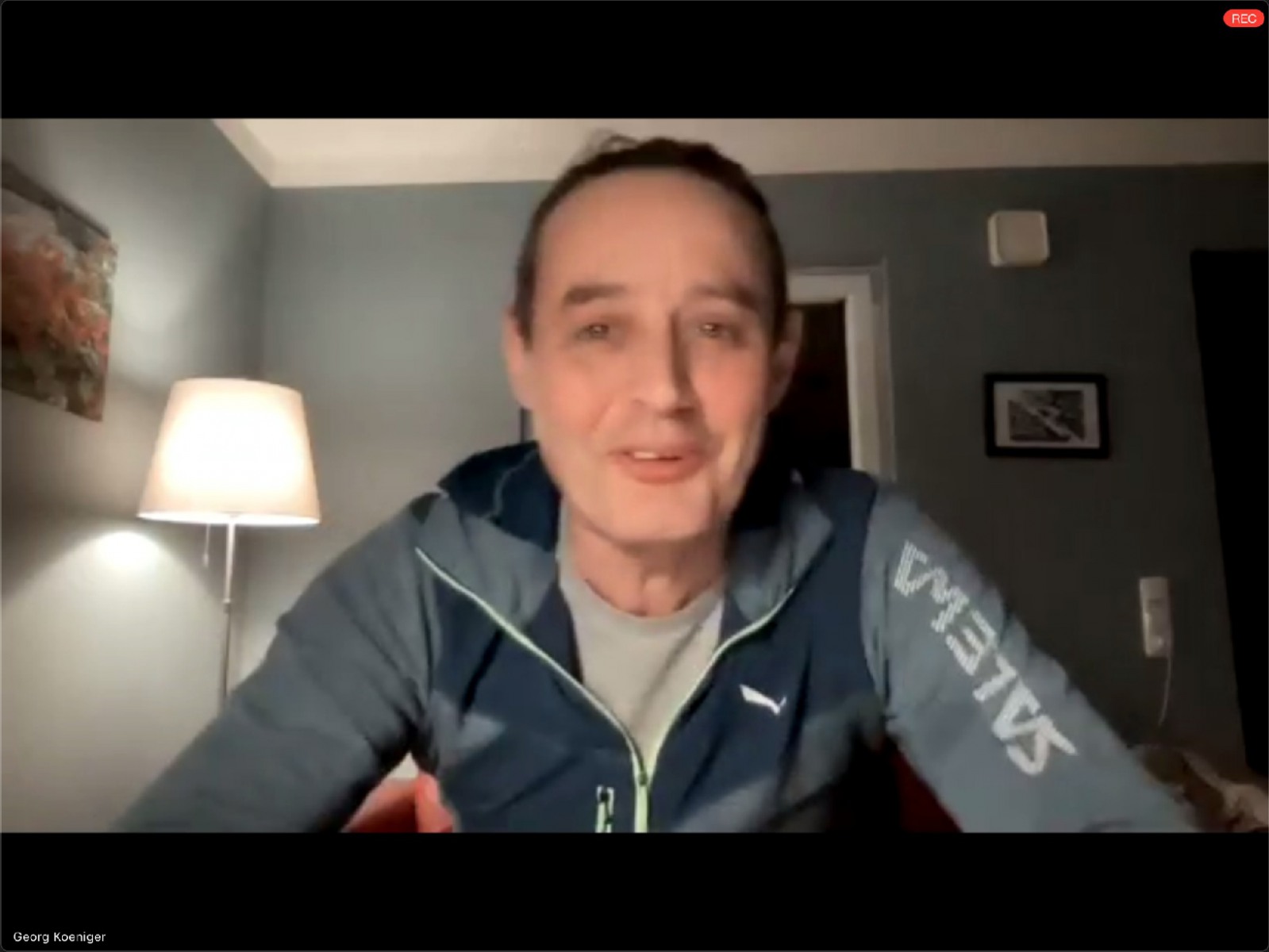 Der Kabarettist Georg Koeniger aus Münster begeisterte mit einem Beitrag über die Münster und einer virtuellen „Trommeleinlage“, unterbrochen von einer „Werbepause für den Frankenwein“ (denn er wohnt seit langer Zeit schon im Bocksbeutel-Land). [Hinweis: Georg Koeniger gehört zum Ensamble des Totalen Bamberger Kabaretts („TBC“)].