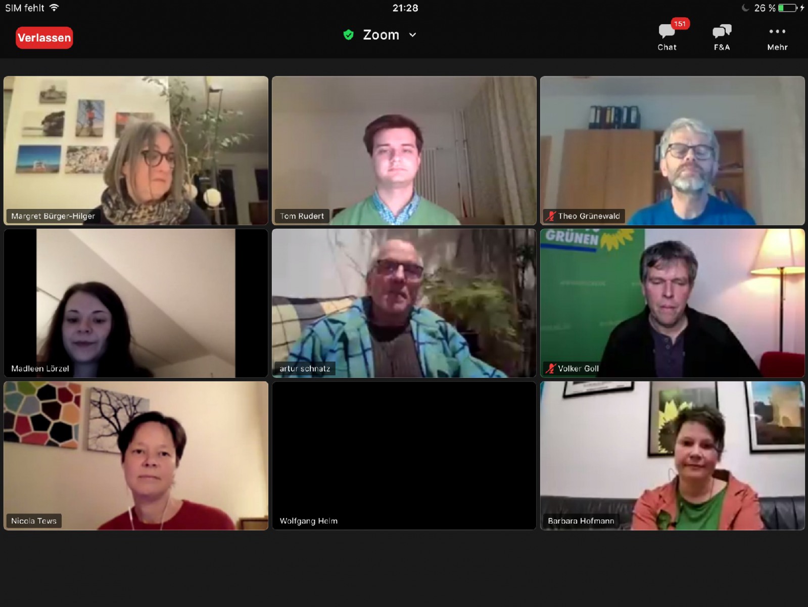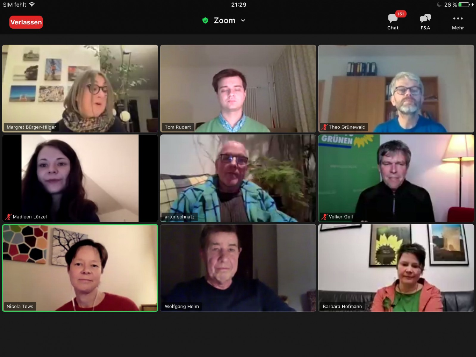 Unter dem Motto „Jede Zeit hat ihre Farbe – und dieses Jahr wird grün“ konnten die Grünen in Kreis und Stadt auf Ihrem digitalen Neujahrsempfang 160 Gäste, darunter einige Kleinostheimer*innen, begrüßen.