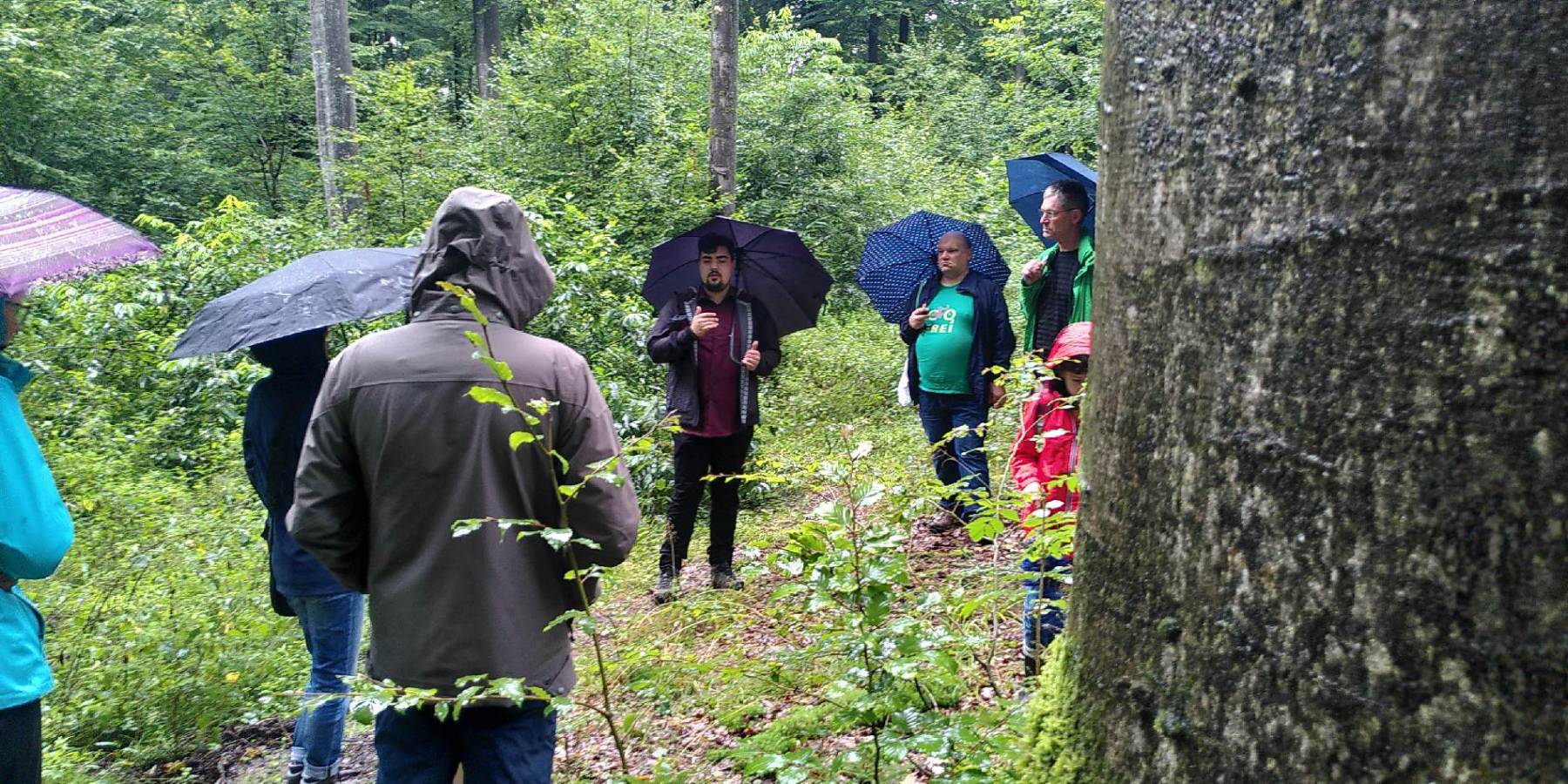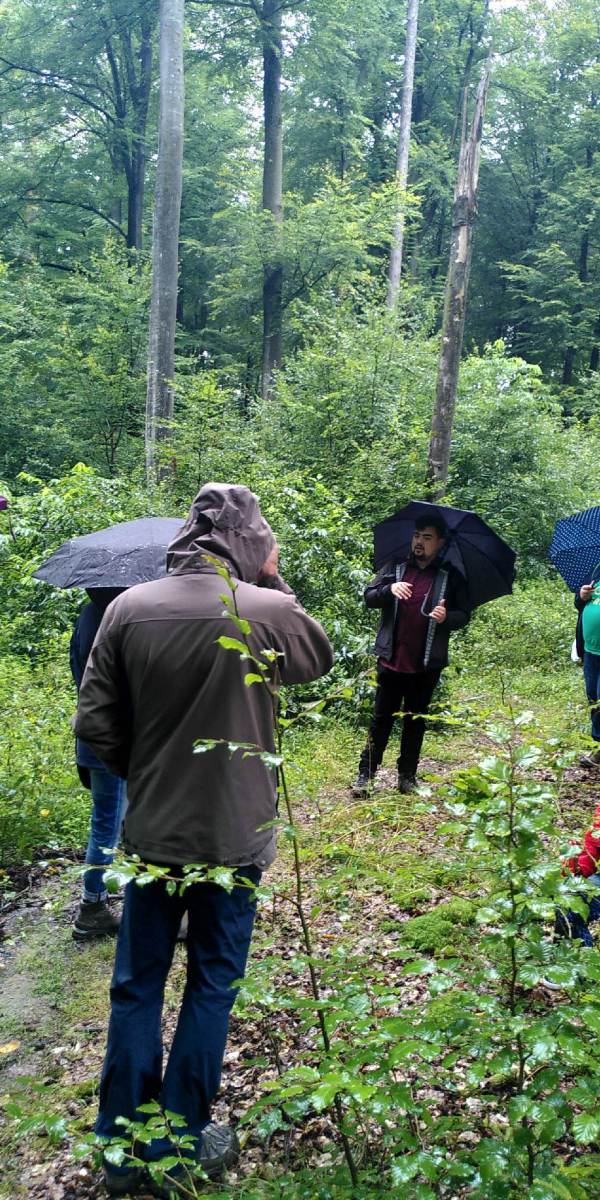 Informativ und fröhlich war die Walderkundung mit Bundestagskandidat Niklas Wagener am Sonntag, 29. August. Nach dem Zusammentreffen am Parkplatz Anglersee stellte der angehende Förster den 16 Teilnehmer*innen an mehreren Stationen entlang des Mainwanderwegs verschiedene Themenpunkte rund um den Wald vor.