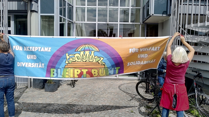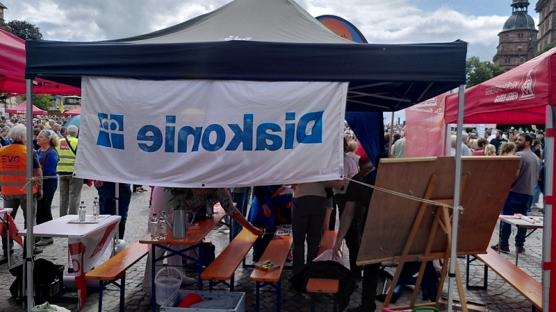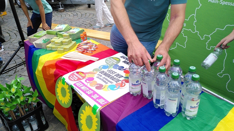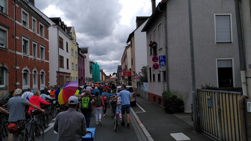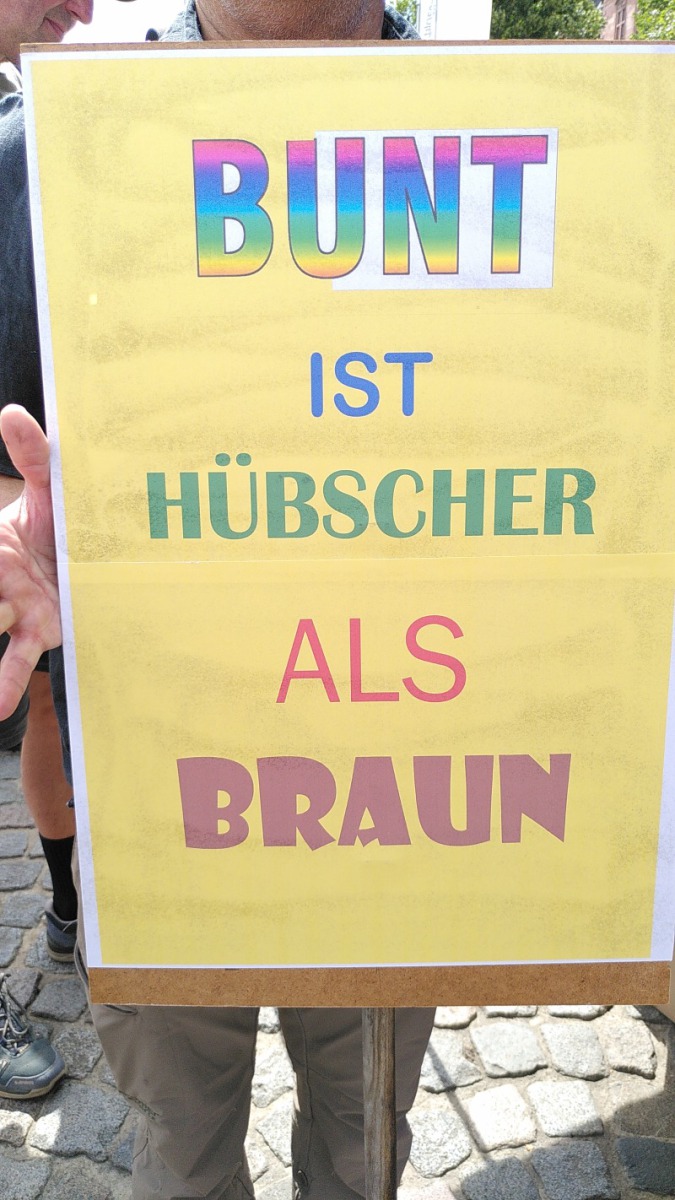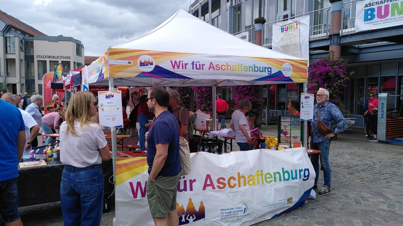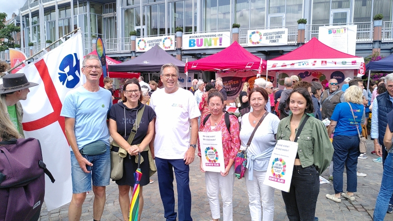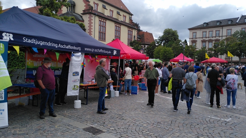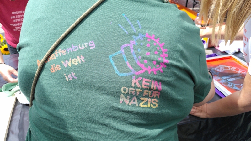 Rund 3500 Menschen sind am 30. Juli in Aschaffenburg für Vielfalt und Weltoffenheit auf die Straße gegangen. In drei Zügen sind die Teilnehmer*innen zum Schlossplatz gelaufen, um dort mit Musik, Kabarett und Tanz ein Fest der Demokratie zu feiern.