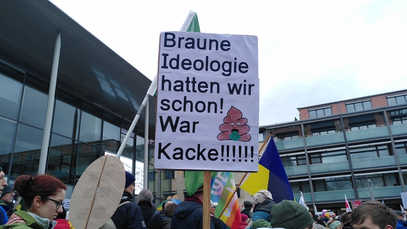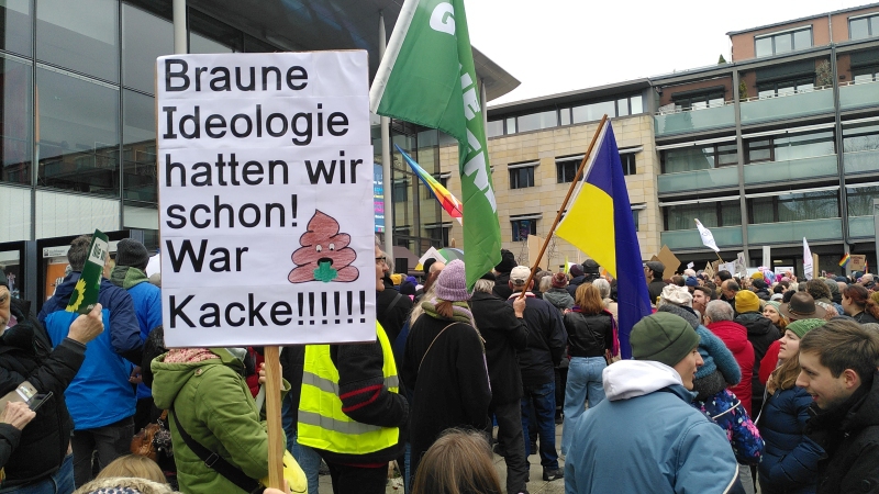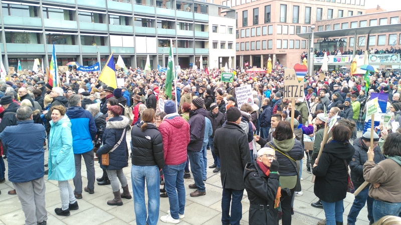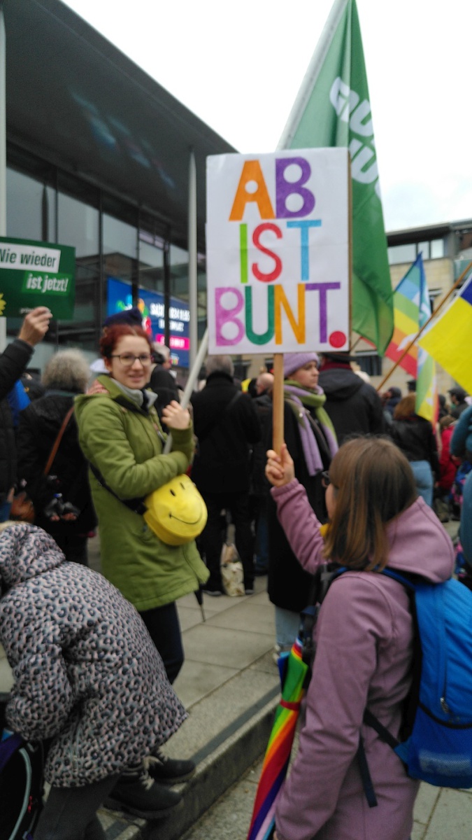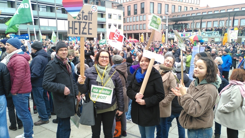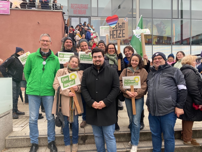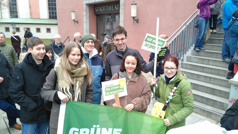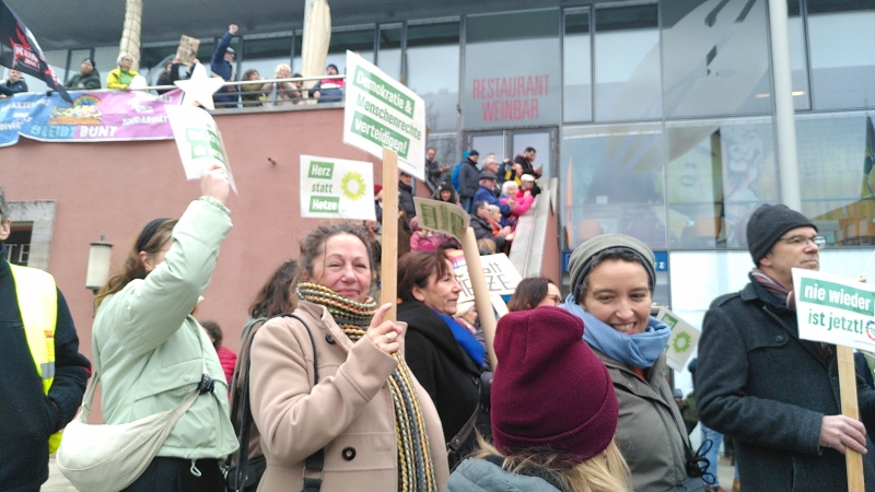 Auch wir, der Grüne Ortsverein Kleinostheim, nahmen an der Aktion auf dem Theaterplatz teil und setzten ein Zeichen für Demokratie und Menschlichkeit.