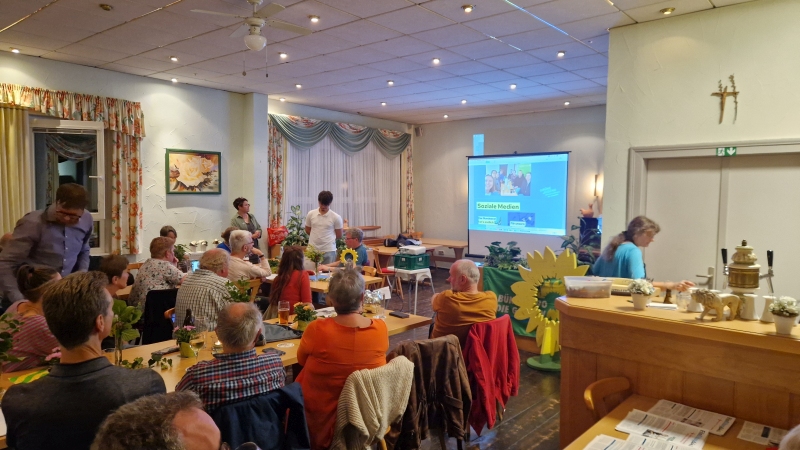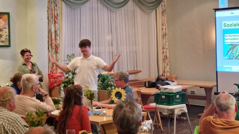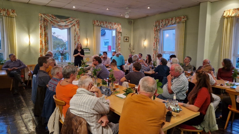Zur Jahreshauptversammlung der Grünen im Landkreis Aschaffenburg am 20. September konnten die Vorsitzenden Barbara Hofmann und Volker Goll neben sehr vielen Mitgliedern und Gästen auch die Landesvorsitzende Eva Lettenbauer und den Bundestagsabgeordneten Niklas Wagener begrüßen.