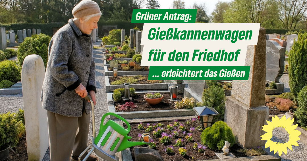 Hiermit stellen wir einen Antrag, auf dem Friedhof Gießkannen-Wagen (z. B. ein kleiner Handwagen oder Rollwagen) dauerhaft bereitzustellen.