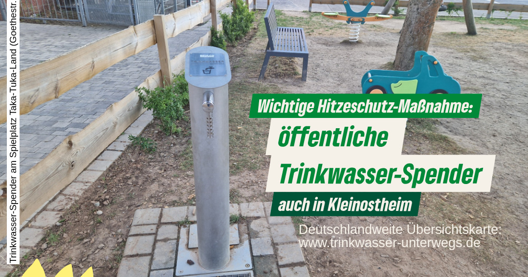 Wer wissen möchte, wo es in ganz Deutschland Trinkwasserbrunnen gibt, findet hier eine praktische Übersichtskarte. Kleinostheim wird dort bald auch auftauchen – wir haben die Anmeldung heute angeschoben.
