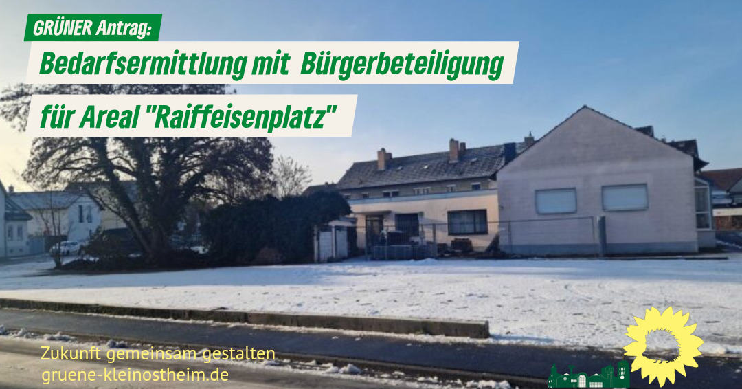 Die Gemeinde ermittelt mittels mit einer Bürger*innenbeteiligung den umfänglichen Bedarf bzw. die Ideen für eine Neugestaltung bzw. Nutzung des gemeindlichen Grundstück „Raiffeisenplatz“ in der Ortsmitte.
