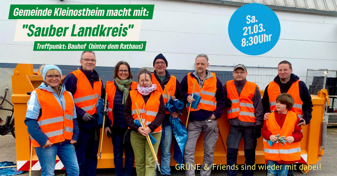 Die Gemeinde Kleinostheim lädt zur Aktion „Sauberer Landkreis“ ein. Alle Bürgerinnen und Bürger sind herzlich willkommen, sich zu beteiligen und gemeinsam etwas für eine saubere Umwelt zu tun.